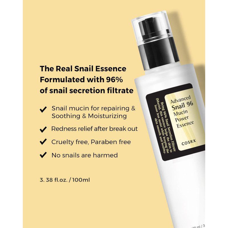 - ترمیم و بازسازی پوست اسنس حلزون ۹۶٪ موسین کوزارکس به بازسازی و ترمیم آسیبهای پوستی کمک میکند. این محصول بهویژه برای بهبود وضعیت پوستهای آسیبدیده از آفتاب، جای زخمها و دیگر مشکلات پوستی مؤثر است.