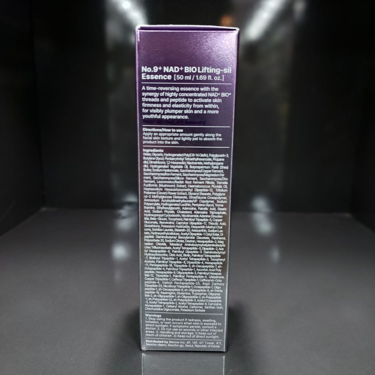 هر محصول از نامبوزین با یک شماره مشخص میشود که هدف درمانی خاصی دارد. شماره ۹+، یعنی نسخهی NAD + BIO Lifting-sil، تمرکز ویژهای بر افزایش استحکام، کاهش چروک و بازگرداندن قوام پوست دارد. این محصول نتیجهی ترکیب فناوری زیستی، پپتیدهای پیشرفته و ترکیبات آبرسان عمیق است.