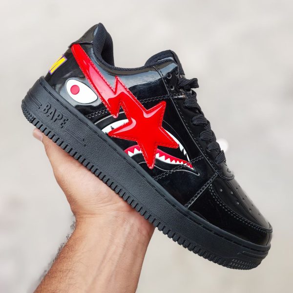 لوگوی ستارهای BAPE که بهطور برجسته در کنارههای کفش قرار دارد، یکی از نمادهای اصلی این برند است. این لوگو نهتنها به کفش ظاهری خاص و شیک میبخشد، بلکه نشاندهنده اصالت و هویت برند BAPE نیز هست. ترکیب این لوگو با طراحی کلی کفش، آن را به یک انتخاب متمایز برای افرادی تبدیل کرده است که به دنبال کتونیای با استایل خاص و منحصربهفرد هستند.