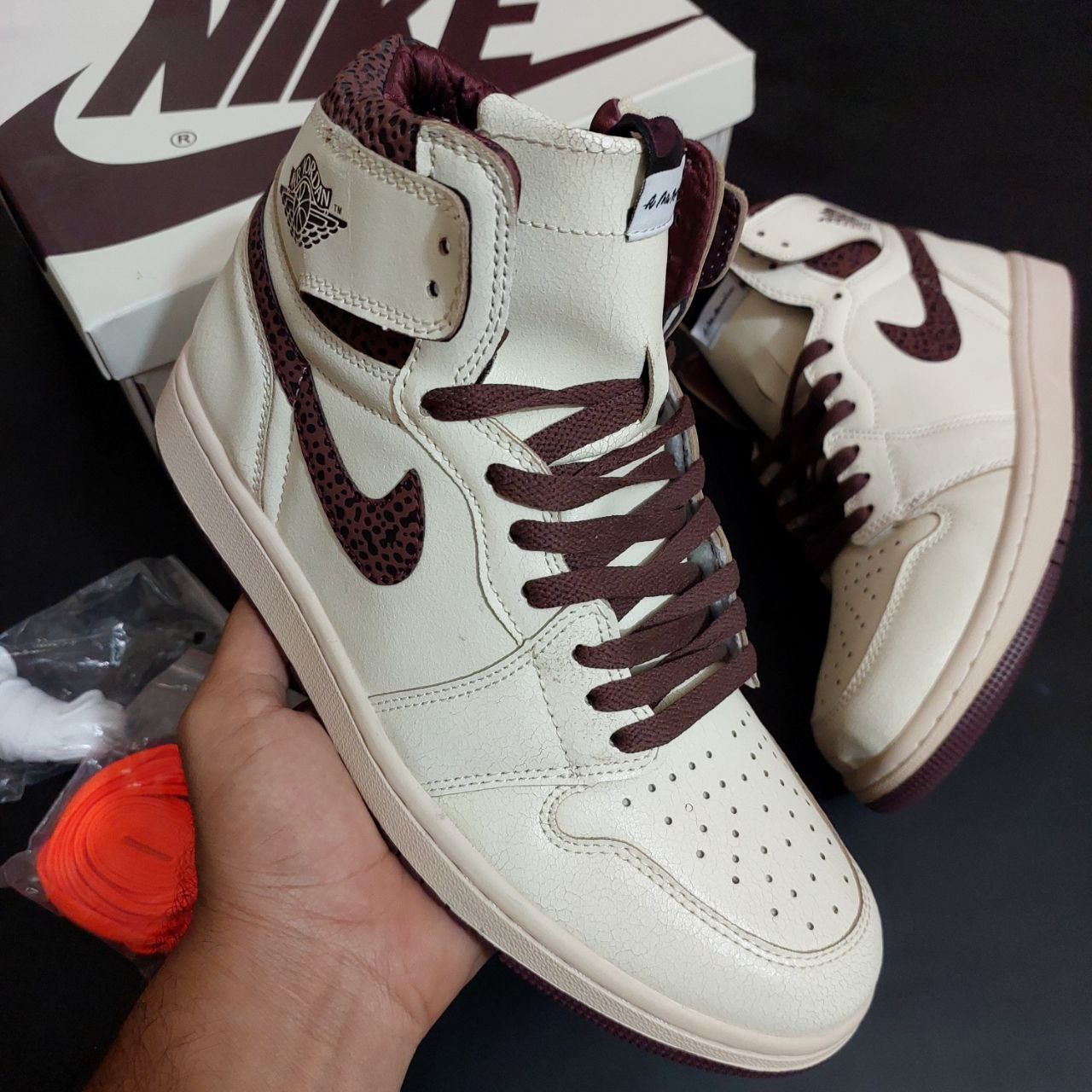 طراحی کلاسیک و جذاب کتونی نایک ایر جردن زنانه مدل وان رترو ساقدار کرم قهوه ای
