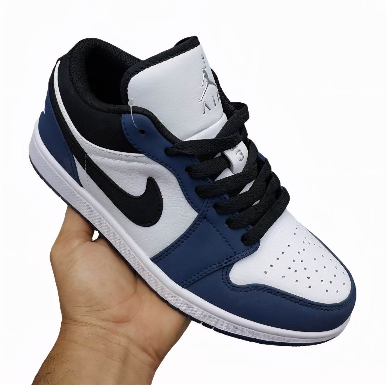 کتونی نایک ایر جردن زنانه مدل وان سفید آبی سرمه ای یکی از جذابترین و پرفروشترین مدلهای زنانه برند نایک جردن است که بهدلیل طراحی خیرهکننده، کیفیت ساخت بالا و راحتی مثالزدنی، جایگاه ویژهای در میان علاقهمندان به استایل اسپرت و کژوال پیدا کرده است. این کتونی با الهام از مدل افسانهای Air Jordan 1 طراحی شده و رنگبندی حرفهای سفید، آبی و سرمه ای آن جلوهای مدرن، جوانپسند و خاص ایجاد میکند. کتونی نایک ایر جردن زنانه مدل وان سفید آبی سرمه ای علاوه بر ظاهر فوقالعاده، با انعطافپذیری عالی، قالب استاندارد و قابلیت استفاده روزمره، انتخابی بینقص برای بانوانی است که در کنار زیبایی، راحتی و دوام را نیز میخواهند.