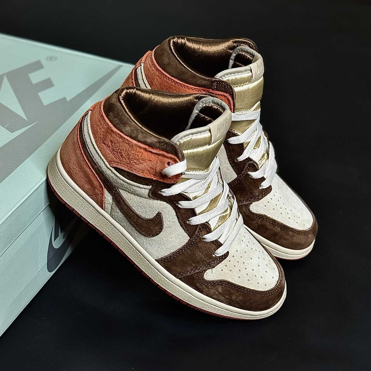 طراحی ظاهری و ویژگیهای بصری کتونی نایک جردن زنانه مدل وان داستد کلی سفید قهوه ای نارنجی