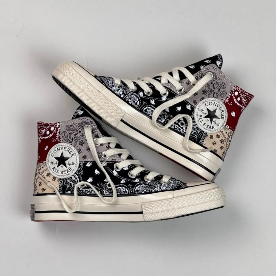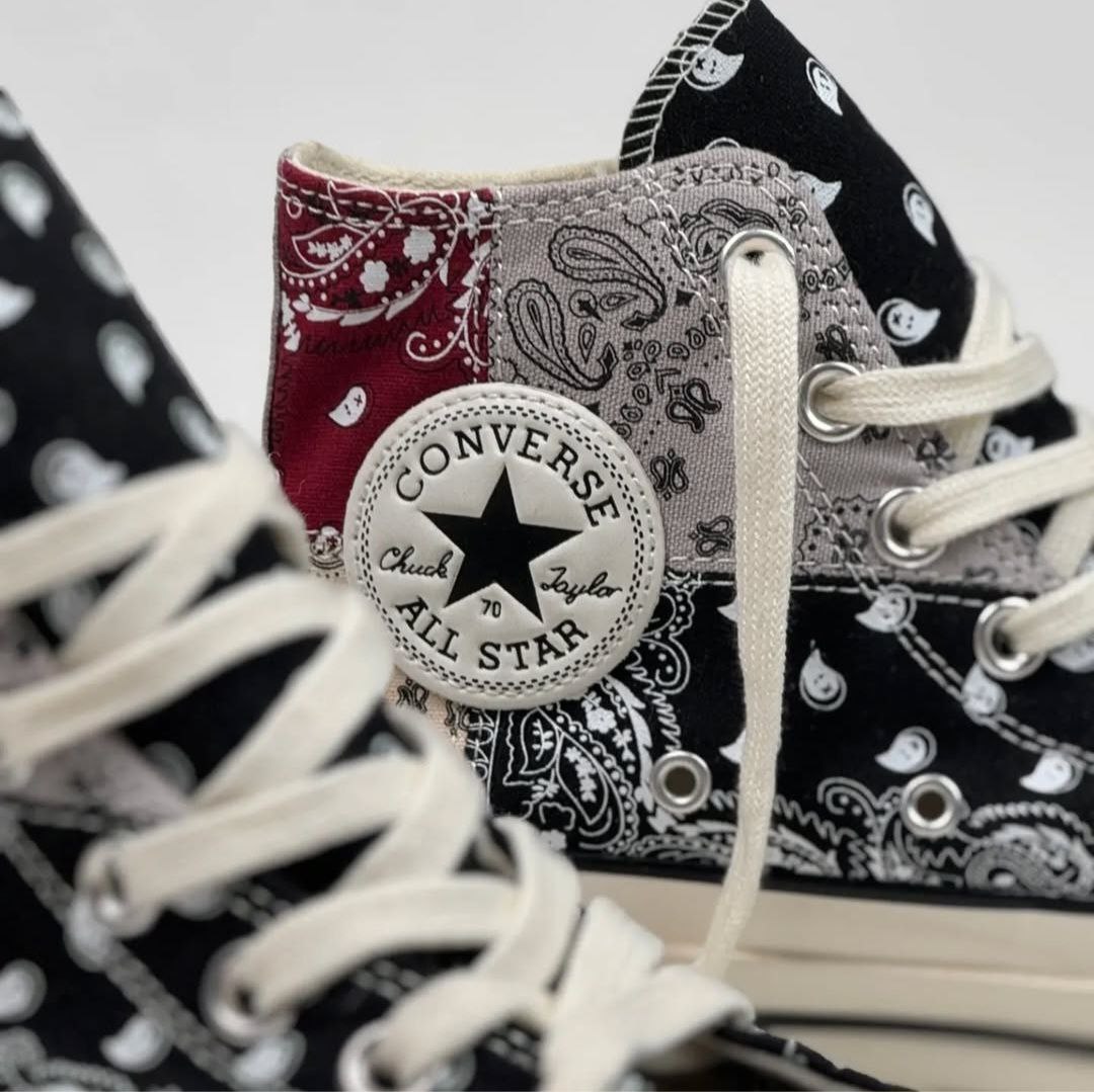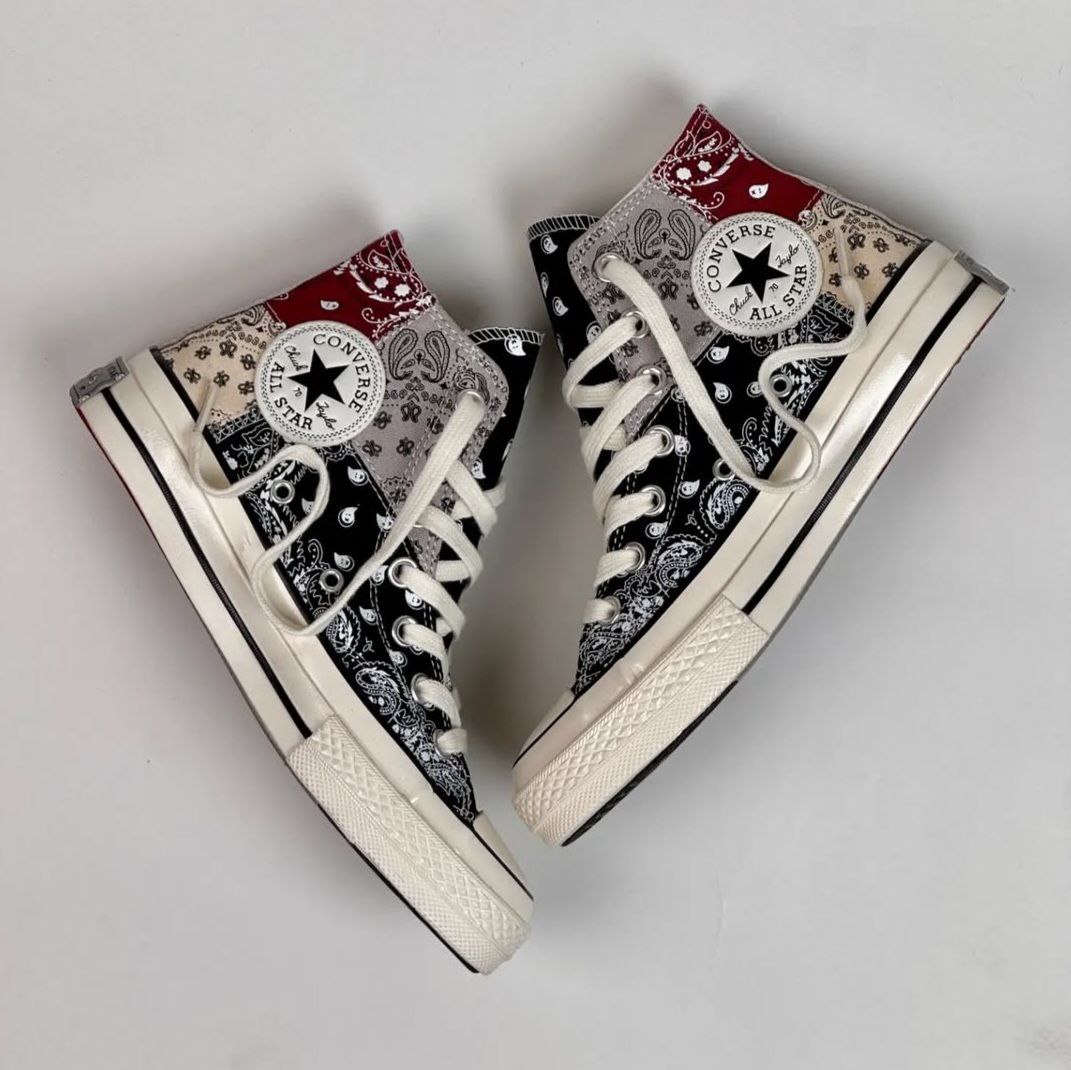 کتونی کانورس آل استار 1970 آف اسپرینگ باندانا رومی سنتی زنانه مستر با طراحی باندانا رومی سنتی خود، استایلی خاص و شیک به شما میبخشد. طرح باندانا که در این مدل بهکار رفته است، به کفش ظاهری منحصر به فرد و متفاوت میدهد که آن را از سایر مدلها متمایز میکند. این طراحی خاص علاوه بر زیبایی، به کتونی جلوهای سنتی و در عین حال مدرن میبخشد.