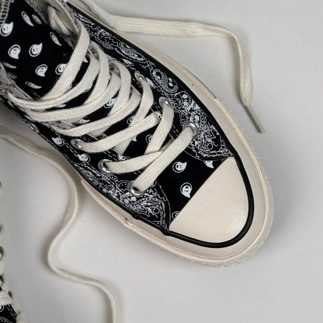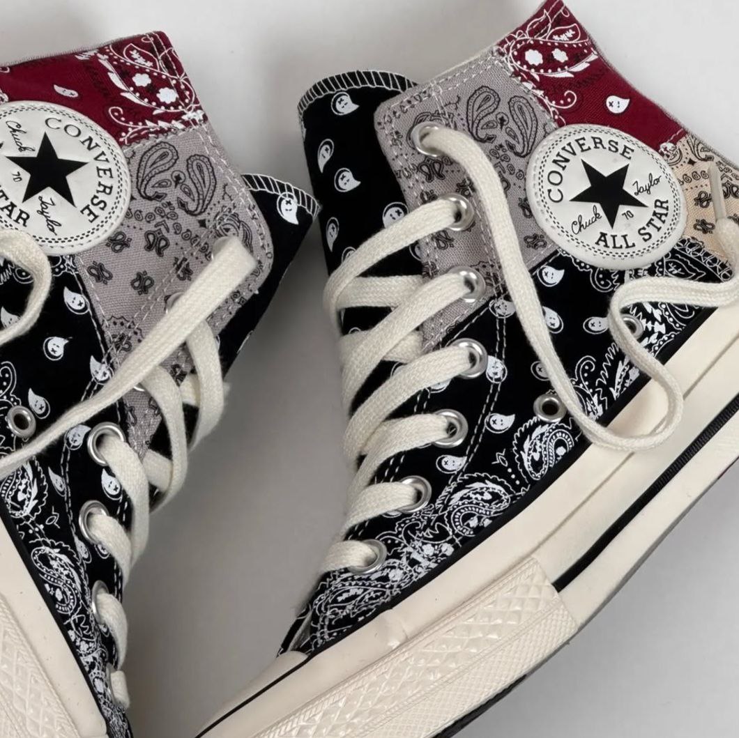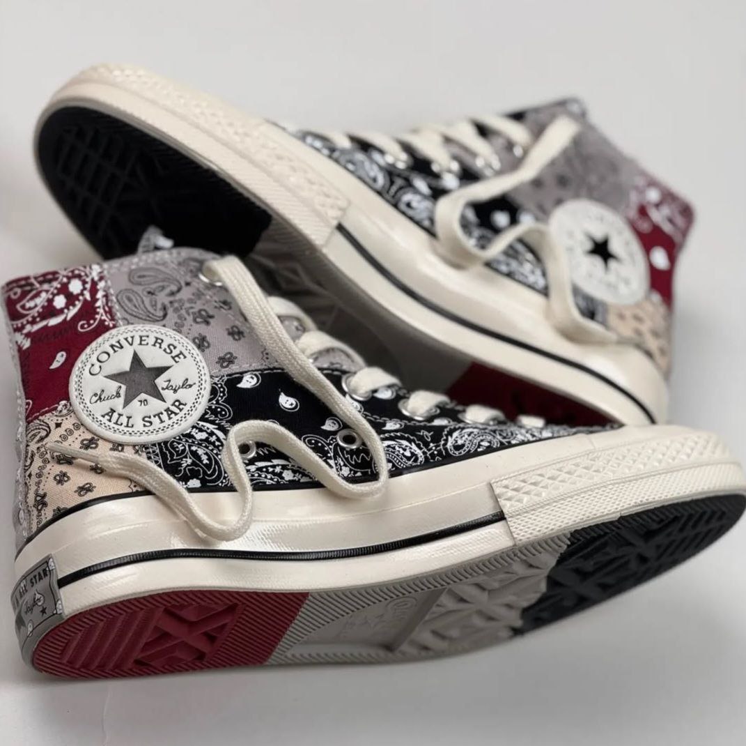 کتونی کانورس آل استار 1970 آف اسپرینگ باندانا رومی سنتی زنانه مستر با طراحی باندانا رومی سنتی خود، استایلی خاص و شیک به شما میبخشد. طرح باندانا که در این مدل بهکار رفته است، به کفش ظاهری منحصر به فرد و متفاوت میدهد که آن را از سایر مدلها متمایز میکند. این طراحی خاص علاوه بر زیبایی، به کتونی جلوهای سنتی و در عین حال مدرن میبخشد.