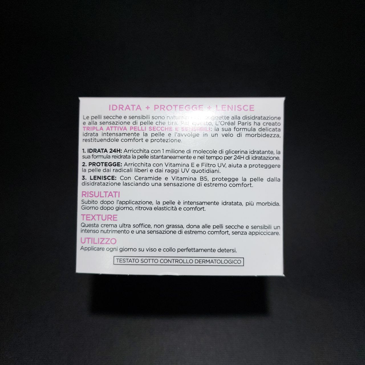 - مرطوبکنندگی (Idrata): فرمول آبرسان قوی کرم، با ترکیباتی مانند گلیسرین و ویتامین E، رطوبت پوست را تا ۲۴ ساعت حفظ کرده و از تبخیر آب در سطح پوست جلوگیری میکند. این ویژگی باعث میشود پوست خشک بهسرعت طراوت خود را بازیابد و از پوستهپوسته شدن و زبری محافظت شود.
