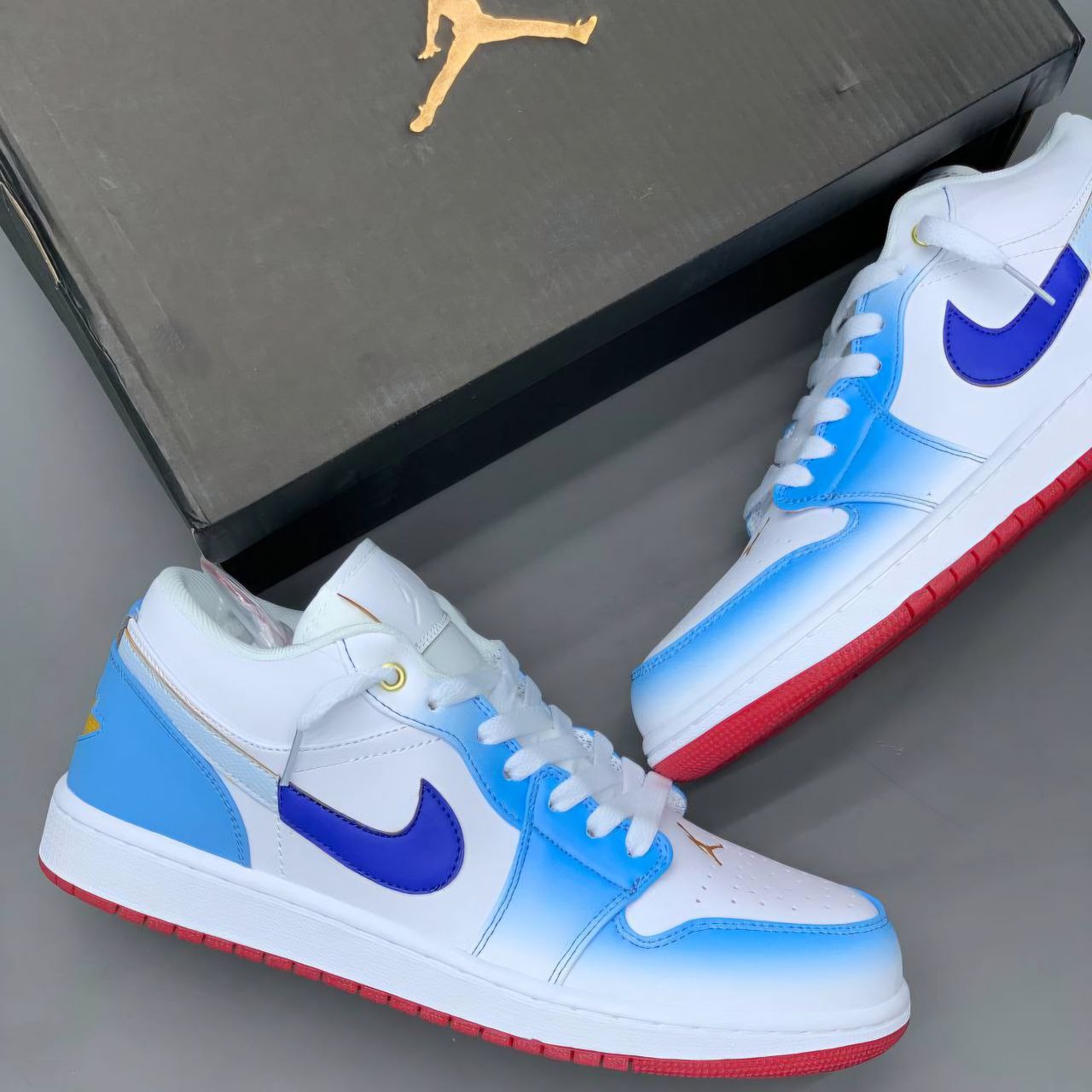 طراحی کفش اسپرت نایک ایر جردن وان سفید آبی مردانه شامل ترکیبی از رنگهای سفید و آبی است که ظاهری شیک و جذاب به آن میبخشد. این کفش با طراحی اسپرت و مدرن، مناسب برای استفاده در محیطهای مختلف است. طراحی ساده و در عین حال جذاب، این کفش را به انتخابی مناسب برای استفاده روزمره تبدیل میکند که میتوان آن را به راحتی با لباسهای مختلف ترکیب کرد.