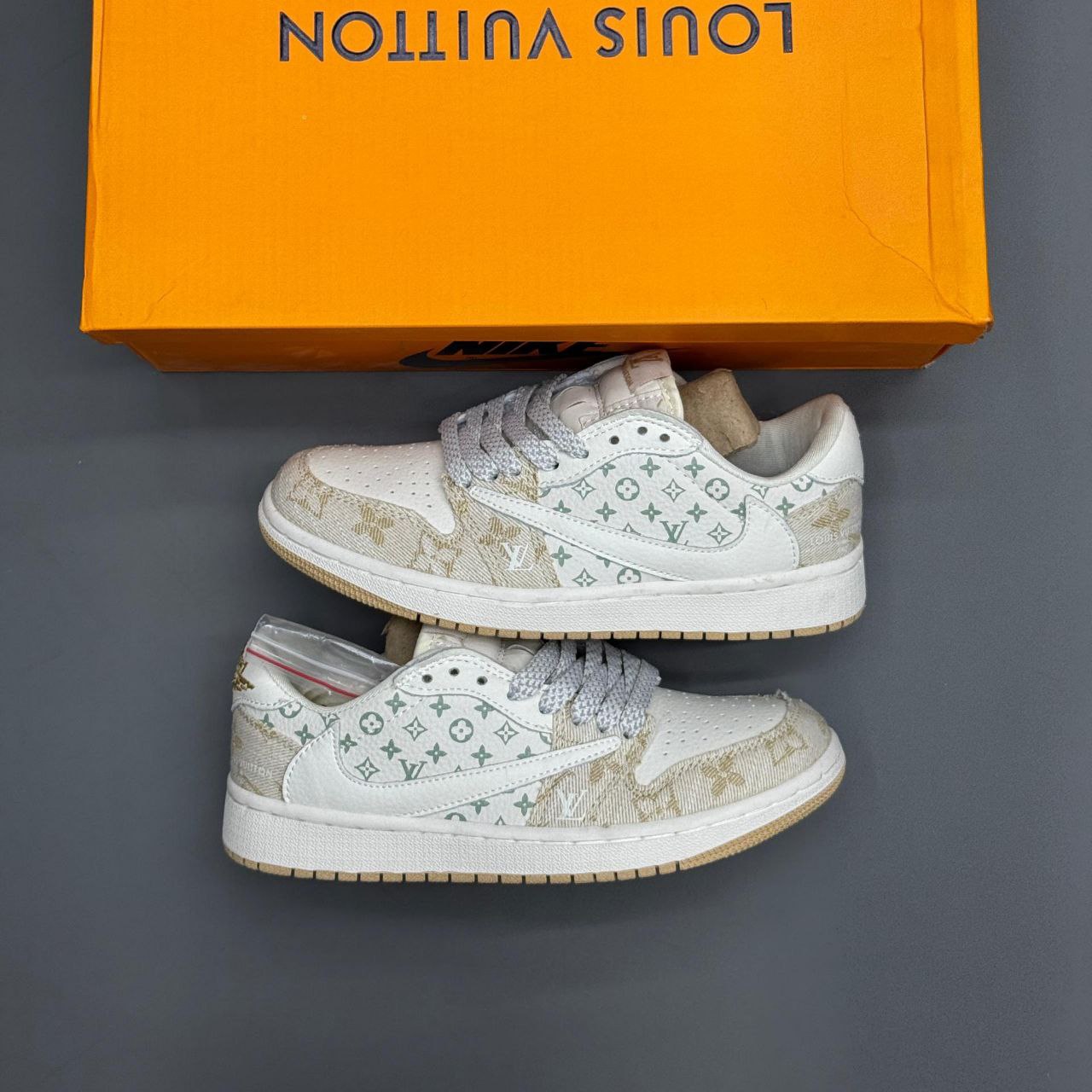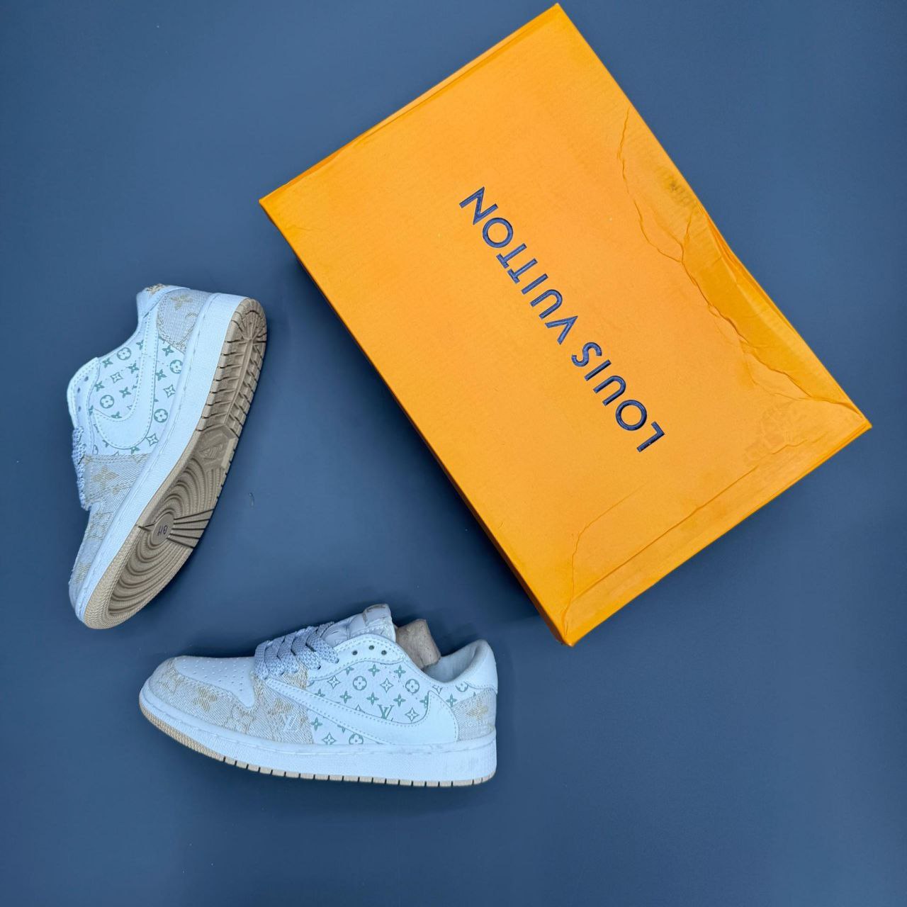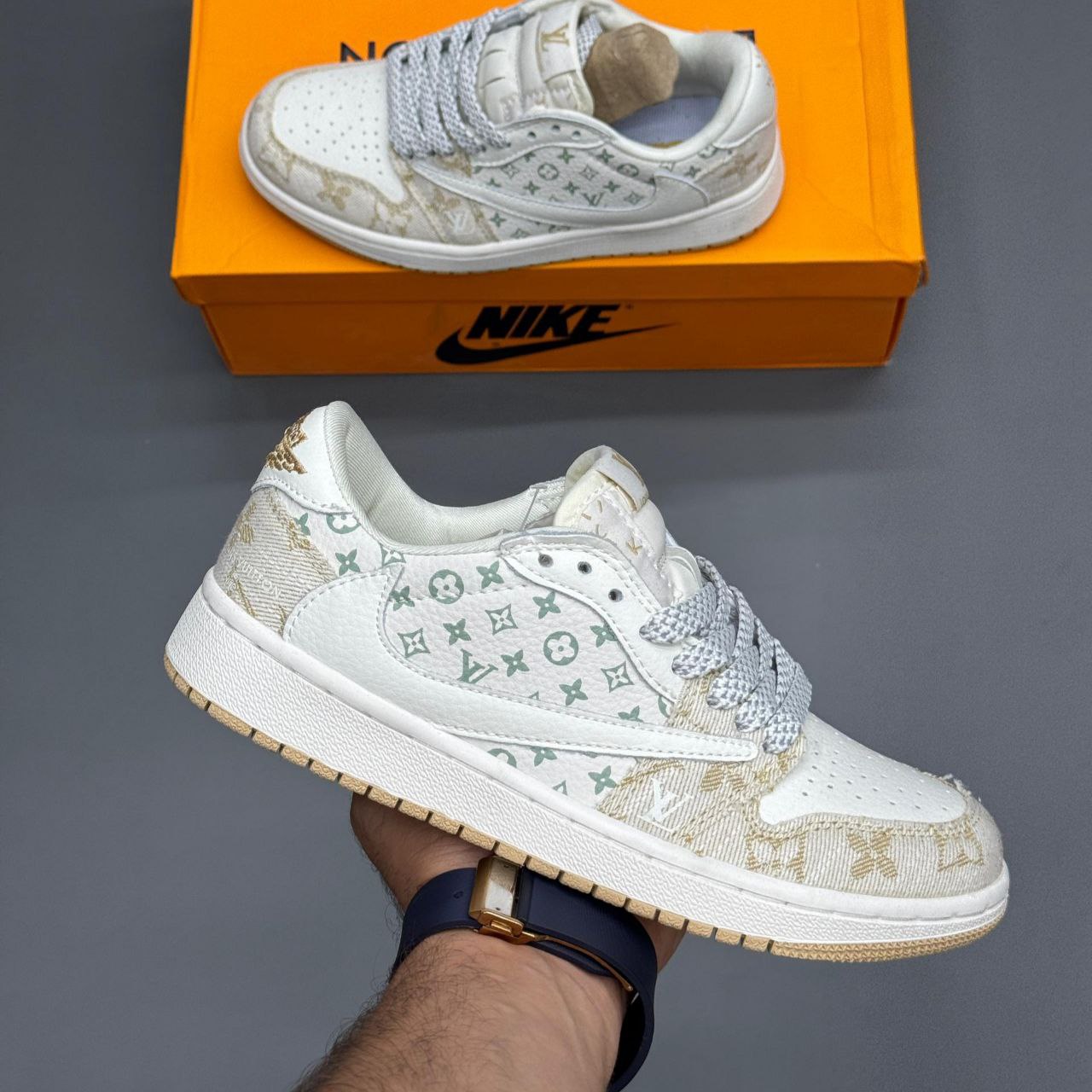 کفش اسپرت نایک جردن تراویس اسکات لویی ویتون مردانه سفید کرم، نتیجه همکاری منحصربهفرد دو برند بزرگ و مطرح جهانی نایک جردن و لویی ویتون است که با هدف خلق محصولی لوکس، شیک و باکیفیت طراحی شده است. این کفش با ترکیب رنگ سفید و کرم ملایم، جلوهای ویژه و چشمنواز دارد که توجه هر مخاطبی را جلب میکند.