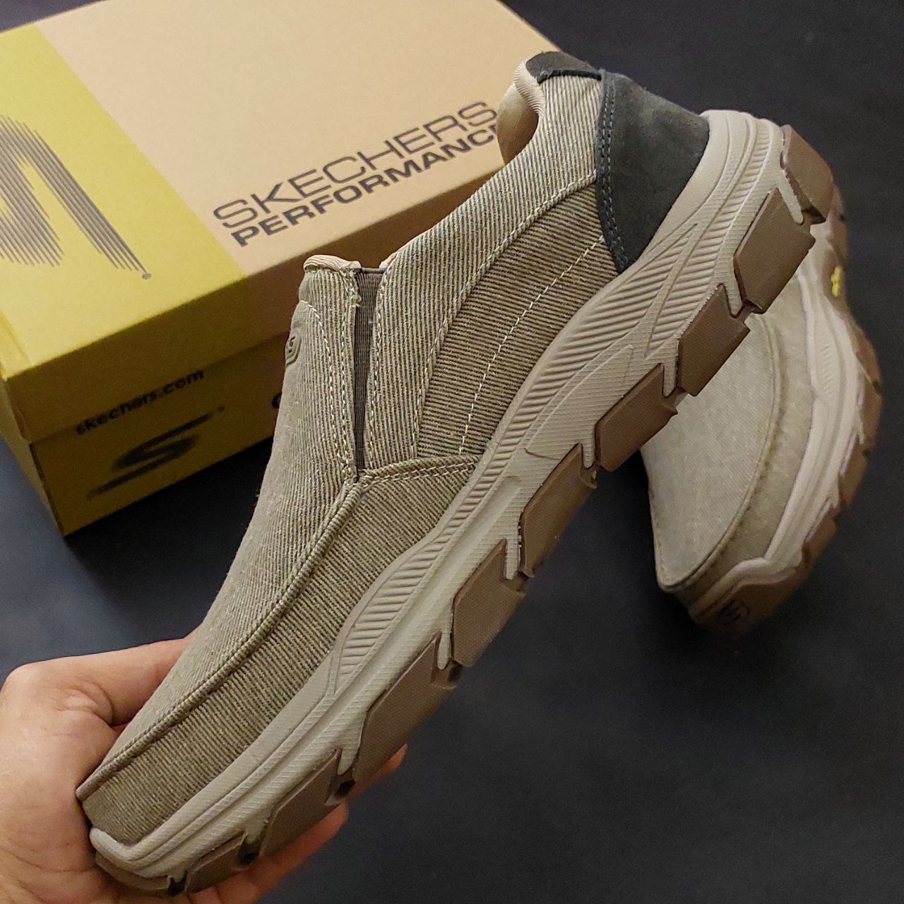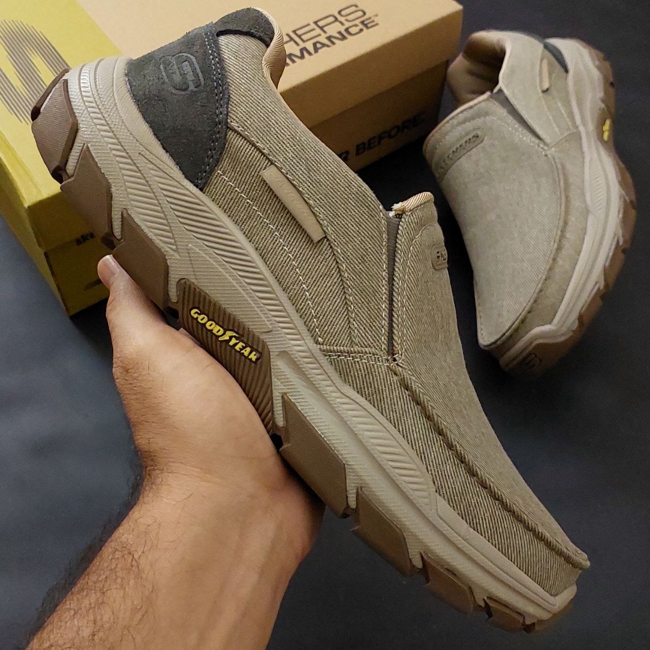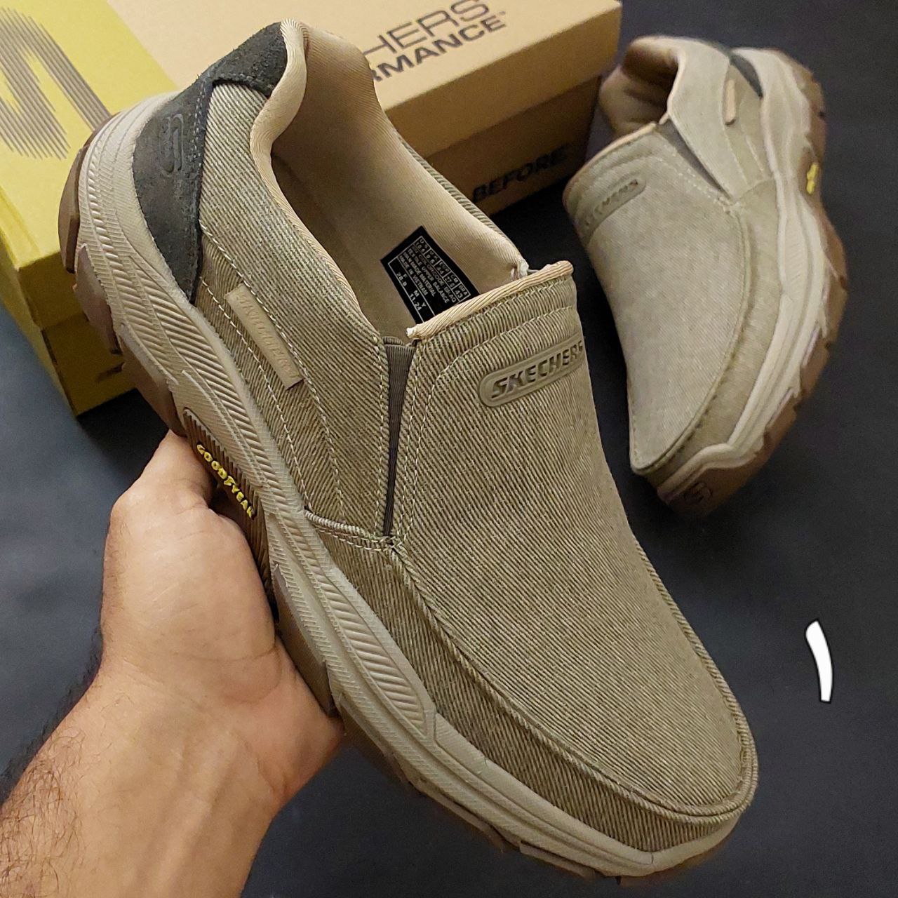 طراحی و استایل کفش اسکیچرز مردانه مدل بدون بند رویه برزنت