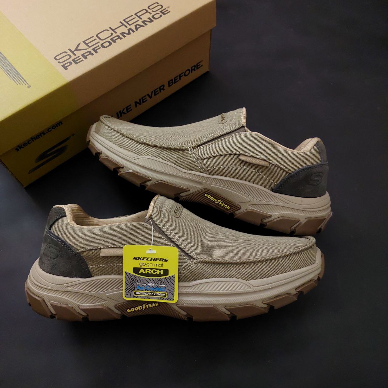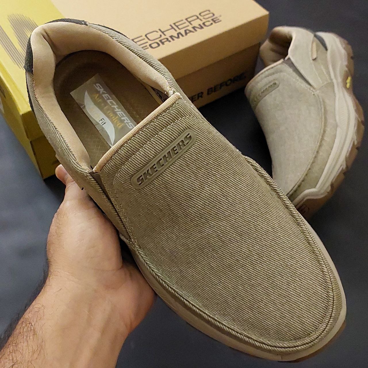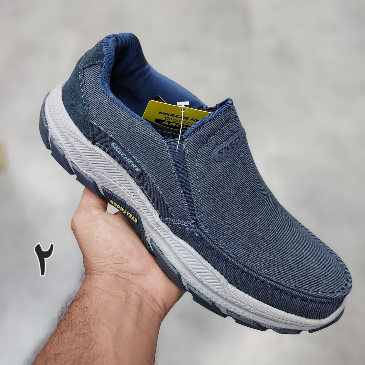 طراحی و استایل کفش اسکیچرز مردانه مدل بدون بند رویه برزنت