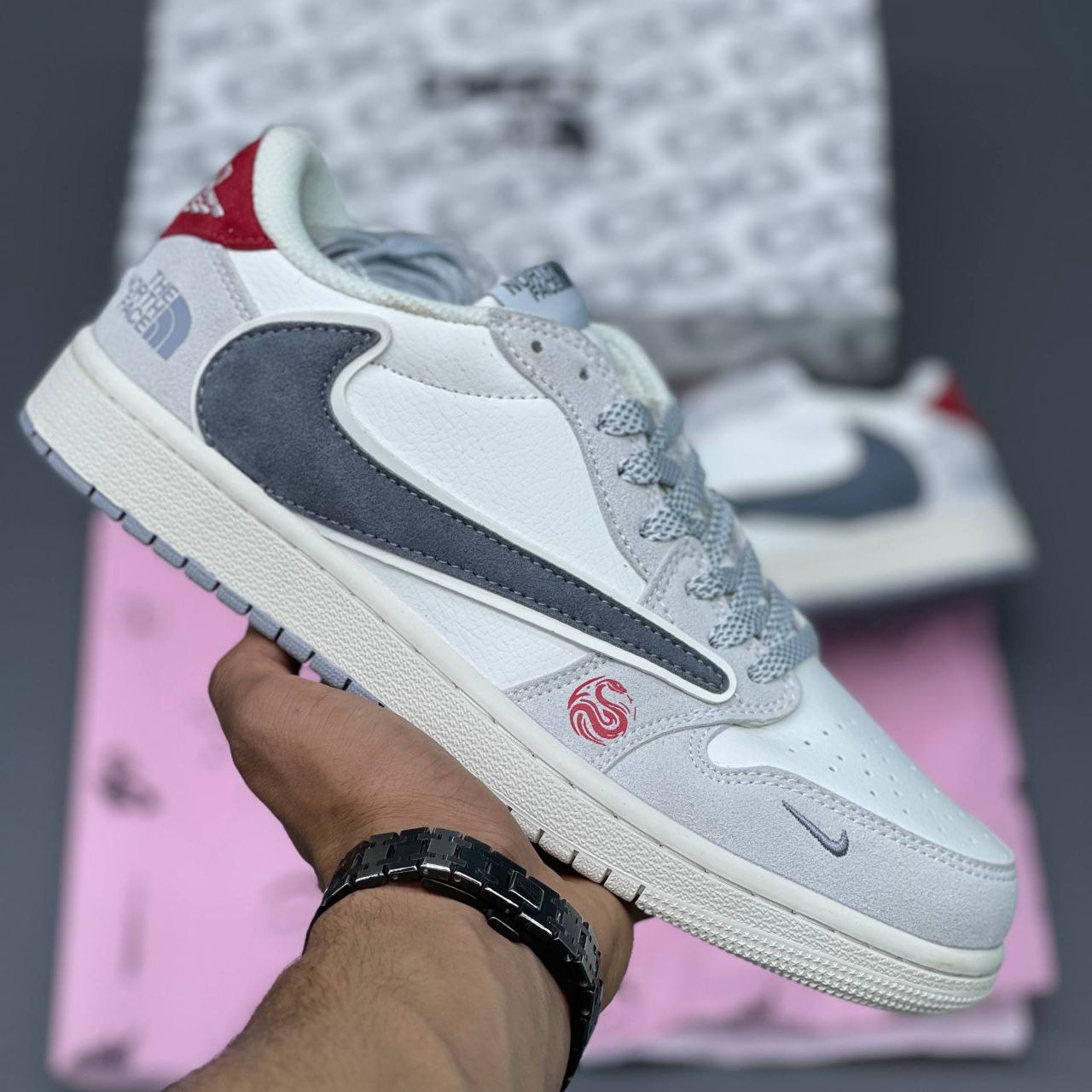 کفش نایک ایرجردن تراویس مردانه اسکات نورث فیس سوپریم با الهام از طراحیهای خاص تراویس اسکات و تلفیق سبک خیابانی برندهای مطرح، تولید شده است. این مدل ضمن حفظ اصالت ایرجردن، ظاهری متفاوت و منحصربهفرد دارد و برای استفاده روزمره، استایل خیابانی و کژوال انتخابی بسیار جذاب محسوب میشود. طراحی این کفش بهگونهای است که هم حس لوکس بودن و هم استایل اسپرت را بهطور همزمان منتقل میکند.