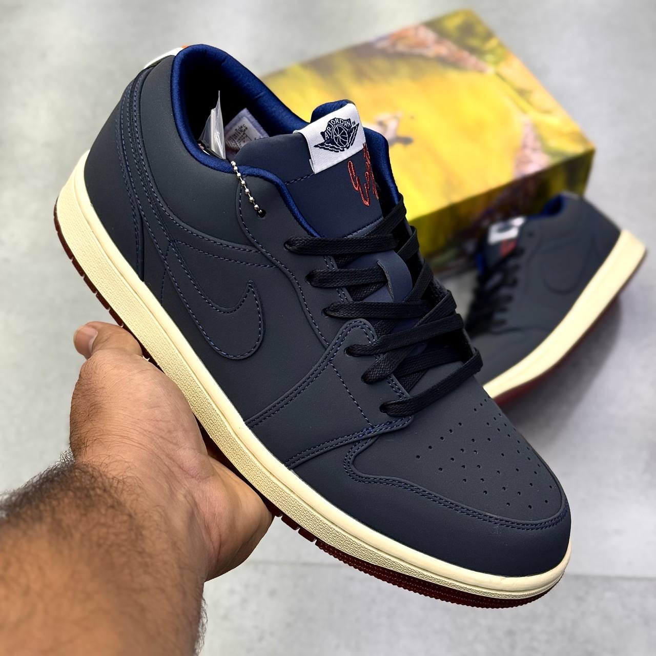 طراحی این مدل با الگوگیری از Air Jordan 1 انجام شده که یکی از نمادینترین کفشهای ورزشی جهان است. ظاهر آن ترکیبی از خطوط کلاسیک، فرم حرفهای، ارتفاع مناسب، و رنگبندی سرمه ای چشمنواز است. رنگ سرمه ای این مدل، قابلیت ست شدن با انواع پوشاک مردانه مانند شلوار جین، اسلش، کتان و حتی شلوارهای نیمهرسمی را بسیار آسان کرده است. کفش نایک ایر جردن مردانه مدل وان سرمهای جذابیت بصری بالایی دارد و برای استایل خیابانی، اسپرت، دانشگاهی، شهری و حتی استایل روزمره کاری گزینهای عالی محسوب میشود.