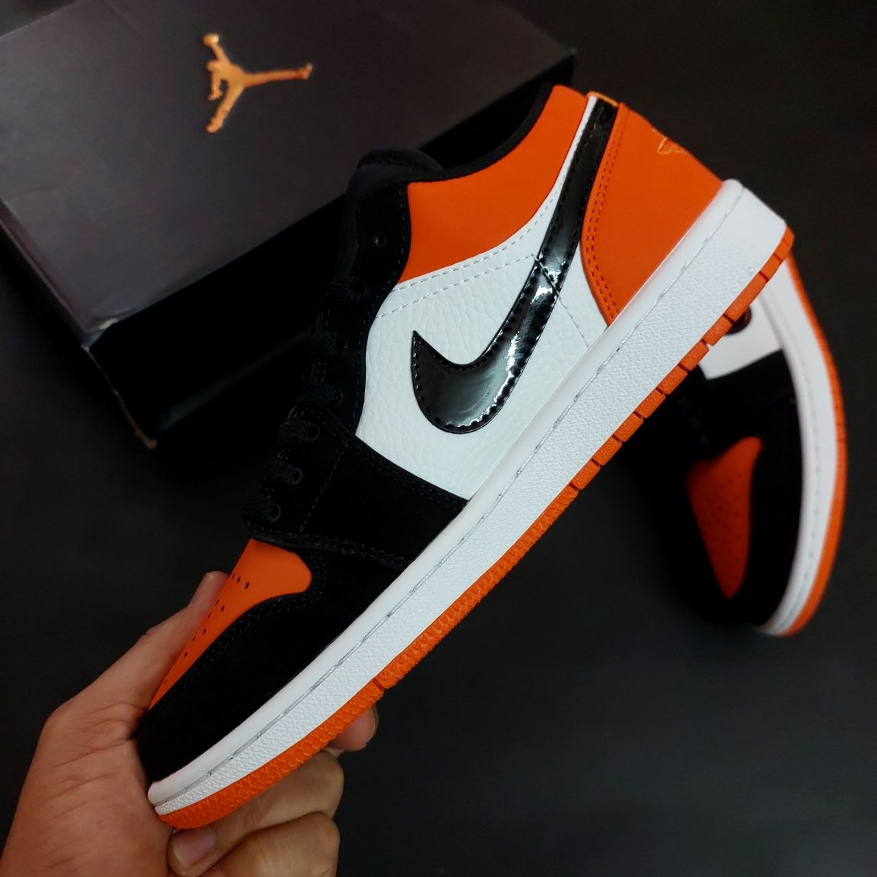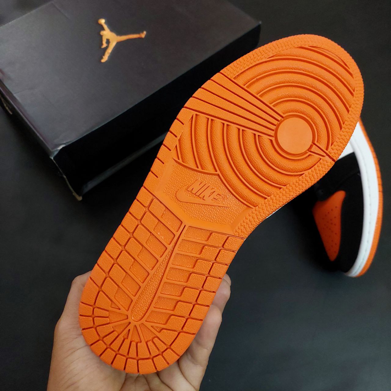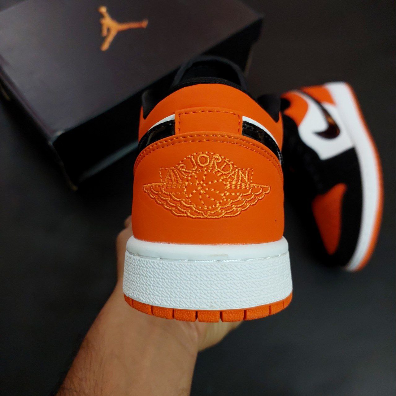 طراحی و ظاهر کفش نایک ایر جردن مردانه مدل وان لو نارنجی مشکی مستر