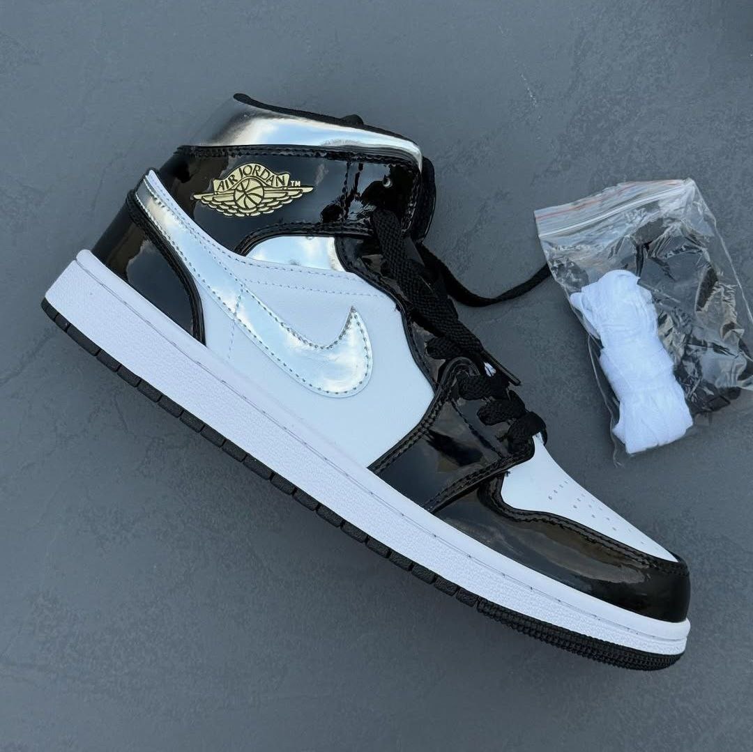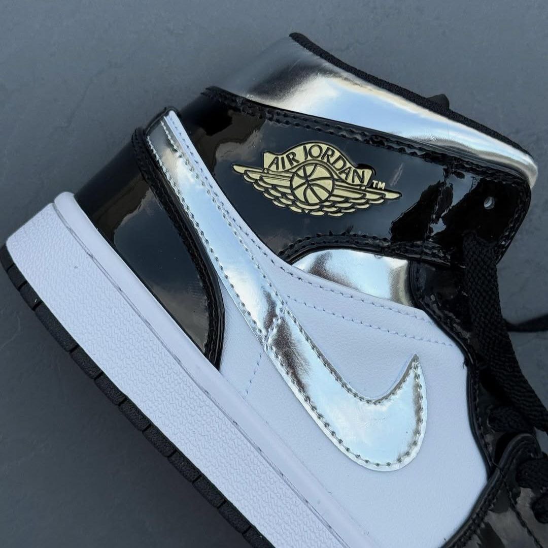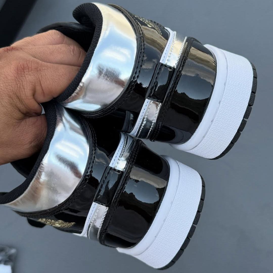 در طراحی این مدل، نایک از همان ساختار نمادین Air Jordan 1 استفاده کرده اما با اضافه کردن جزئیات متالیک و براق، جلوهای مدرنتر و خاصتر ایجاد کرده است. رنگ سفید و مشکی همیشه یکی از پرطرفدارترین ترکیبهای دنیای مد بوده و در این کفش، با روکش ورنی و درخشان، به نهایت زیبایی خود رسیده است.