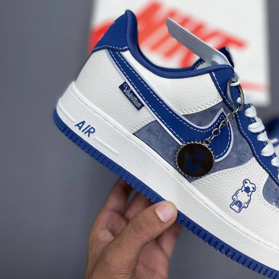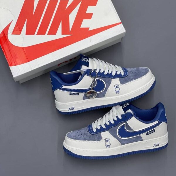 مدل ایر فورس وان یکی از نمادهای طراحی کلاسیک برند نایک است. در نسخه کاستوم آبی سفید، این طراحی با رنگبندی متفاوت و منحصربهفرد تلفیق شده است. رنگ سفید به عنوان پایهای ساده و شیک، با رنگ آبی ترکیب شده و جلوهای مدرن و جوانپسند به کفش بخشیده است.